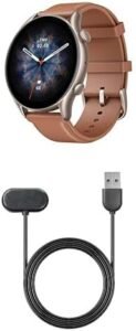 Bundle of Amazfit GTR 3 Pro Smart Watch (Brown Leather) + Official Charging Cable