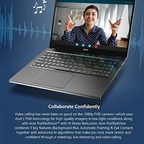 The Smarts: Video calling has never been so good on the 1080p FHD camera—which uses Acer’s TNR technology for high-quality imagery in low-light conditions along with Acer PurifiedVoice with AI Noise Reduction.