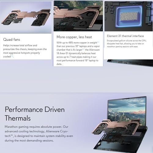 Performance Optimization: Alienware Cryo-Tech™ cooling with vapor chamber, Element 31 thermal interface, quad-fan layout
