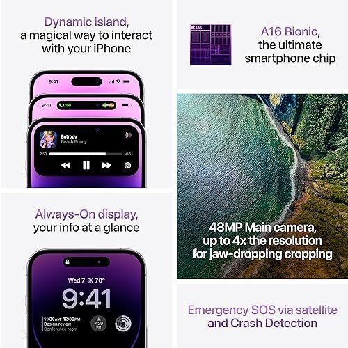 Apple iPhone 14 Pro, 128GB, Space Black – Unlocked (Renewed)