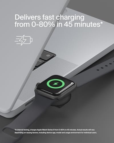 Belkin Portable USB-C Apple Watch Charger – MFi-Certified USB-C Charger for Apple Watch Series 9, 8, 7, Ultra – Compatible with MacBook, iPhone 16 & More – Black