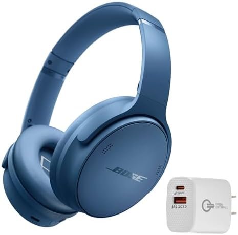 Bose QuietComfort Bluetooth Headphones, Wireless Headphones with Active Over Ear Noise Cancelling and Mic, + Green Extreme 20W 2-Port Wall Charger (Blue Dusk)