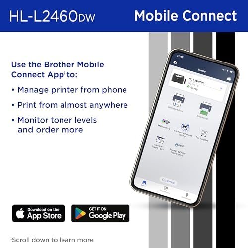 BROTHER MOBILE CONNECT APP – Manage your wireless printer remotely and print from your mobile device anytime, from almost anywhere. Order Brother Genuine Supplies, track toner usage, and complete more work on-the-go(3)