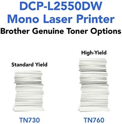 The Brother DCP L2550DW is the ideal choice for the busy home or small office looking for a fast, reliable multi function copier. A replacement for the dependable DCP L2540DW, this new and improved multiple use copier includes a 50 sheet automatic document feeder, which allows multi page copying and scanning, and class leading print speeds of up to 36 pages per minute for increased efficiency. This printer and copier has a reliable Wi Fi connection, which allows printing from wireless devices including desktops, smartphones, laptops, and tablets. For those who prefer hardwire connections, there’s an Ethernet interface for sharing with multiple users on your network. You can also connect locally to a single computer via USB interface. Operating Environment: Temperature 50-91°F. Speed and efficiency are trademarks of the new Brother DCP L2550DW multi purpose digital copier. The 250 sheet paper tray handles letter and legal sized paper, reducing the need for refills. Automatic duplex (2 sided) printing also saves paper and creates professional looking documents for presentations, newsletters, and other common office needs. Help to save money by using Brother Genuine high yield replacement cartridges (TN 760), which are available through Amazon (also compatible with TN 730 replacement toner cartridge). The Brother Digital Multi Purpose Copier comes with a one year limited warranty and free at your side support, online or via phone or live chat, for the life of your printer. At Brother, we want to ensure that your experience with us is exceptional. If your home or small office is looking for an efficient and user friendly digital copier, add the Brother DCP L2550DW to your Amazon shopping cart today. (1) Based on competing in class monochrome laser multifunction printers under 300 dollars. Print speed specifications gathered from manufacturer websites as of 1/9/2017.(2) Requires connection to a wireless network.(3) TN 760 High Yield vs. TN 730 Standard Yield. Up to two times more prints and lower printing costs based on yields and MSRP. Standard Yield and High yield cartridges sold separately.(4) Approx. toner cartridge yield in accordance with ISO/IEC 19752 (letter/A4).(5) Reprinted from PCMag with permission. Copyright 2017 Ziff Davis, All Rights Reserved.(6) Approx. 300 pages per month in accordance with ISO/IEC 19752 (Letter/A4) using the 2 toners provided in box.(7) The mobile device must have NFC capability and run Android OS 4.4 or later.