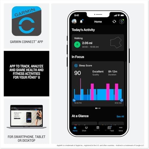 Garmin fēnix® 8 – 47 mm, AMOLED, Sapphire, Premium Multisport GPS Smartwatch, Long-Lasting Battery Life, Dive-Rated, Built-in LED Flashlight, Carbon Gray DLC Titanium with Pebble Gray Band
