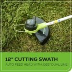[Defeat Thick Brush Invasion] – 12″ commercial-grade trimmer (.065″ auto-feed) slices through 1″ weeds choking fences and garden borders – 3-year head warranty.