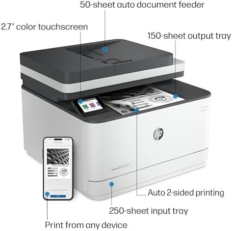 UPGRADED FEATURES – Fast printing, scanning and copying, auto 2-sided printing, a 250-sheet input tray and 50-sheet auto document feeder