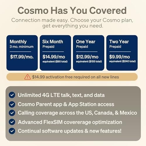 SECURE CALLING & MESSAGING –– Get the best kid-safe connection with Cosmo. Reliable family-safe calling coverage across the US, Canada, and Mexico. With Cosmo’s True Texting, securely share text, pictures, audio, and even short video messages with parent-approved contacts to bring everyone closer together.