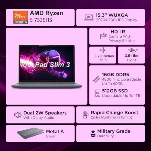 Lenovo IdeaPad Laptop Computer for Home Student Business, AMD Ryzen 5 7535HS (Beat i5-13500H), 15.3″ FHD+, 40GB DDR5 RAM, 1TB PCIe SSD, WiFi 6, Bluetooth 5.3, HDMI, Luna Grey, Windows 11 Pro, Wendbo