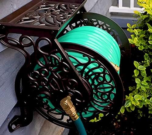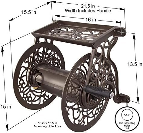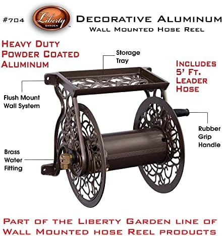 Liberty GARDEN 704 Decorative Cast Aluminum Wall Mount Garden Hose Reel, Holds 125-Feet of 5/8-Inch Hose – Bronze