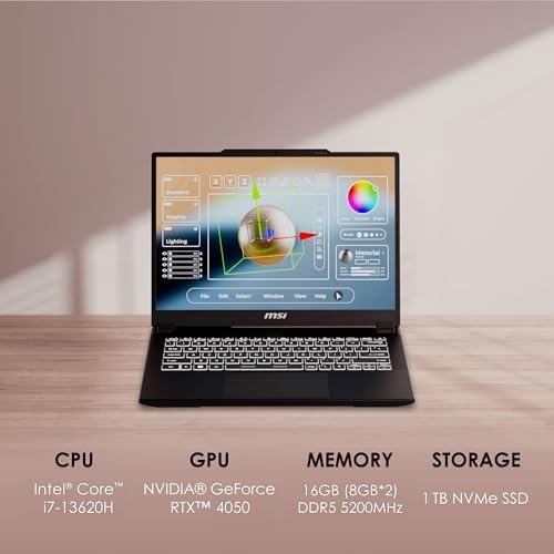 MSI Creator M14 14” 2.8K Display Creator Laptop: Intel Core i7-13620H, NVIDIA Geforce RTX 4050, 16GB DDR5, 1TB NVMe SSD, Cooler Boost, Win 11: Black A13VE-083US Simplistic Design: Enjoy the latest generation of Windows 11 Home for your everyday needs. *MSI recommends Windows 11 Pro for business use. Beyond Fast: The NVIDIA GeForce RTX 4050 powered by the Ada architecture unleashes the full glory of ray tracing, which simulates how light behaves in the real world. QHD+ Display: The 14” 60Hz display delivers abundant color gamut, more vivid colors and details for an accurate picture. Exclusive Login Experience: Supports Windows Hello instant facial unlock with integrated webcam and IR sensor or use your fingerprint for instant access.