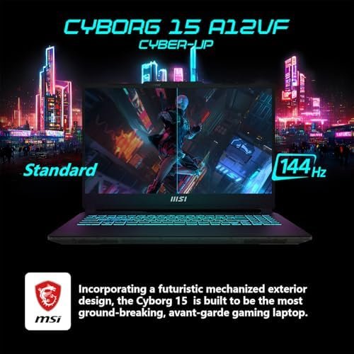 MSI Cyborg 15 i7 RTX 4060 Pro Gaming Laptop, 15.6 FHD 144Hz, Intel i7-12650H (Beats AMD Ryzen 7 7435HS), NVIDIA RTX 4060, 32GB DDR5 RAM, 1TB SSD, Wi-Fi 6, Win 11 P, Bundle with PCO Laptop Cooler