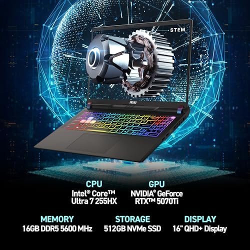 MSI Vector 16 HX AI 16” 144Hz FHD+ Gaming Laptop: Intel Core Ultra 7-255HX, NVIDIA Geforce RTX 5070Ti, 16GB DDR5, 512GB NVMe SSD, Thunderbolt 5, Wi-Fi 6E, Win 11 Home: Cosmo Gray A2XWHG-212US