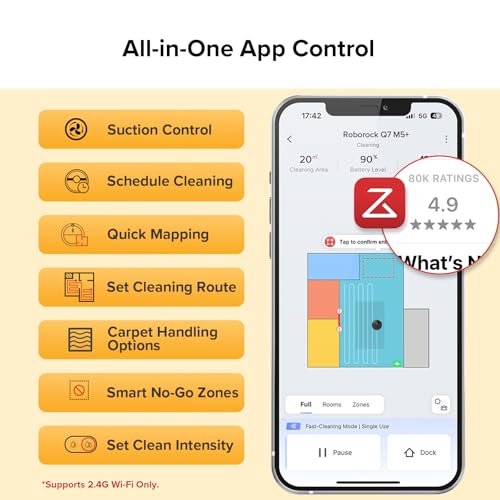 Easy and Effortless Control with the Roborock App: Automate your cleaning routine with scheduled cleanings, start a quick spot clean when needed, set no-go zones around pet areas, and monitor progress and battery life in real time. All of these features are easily accessible from your smartphone, offering you greater convenience and control. Please note that the app supports 2.4GHz Wi-Fi only.