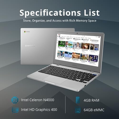 SAMSUNG Galaxy Chromebook 4 11.6” 64GB Laptop Computer w/ 4GB RAM, Gigabit WiFi, HD Intel Celeron Processor, Compact Design, Military Grade Durability, US Version, Silver