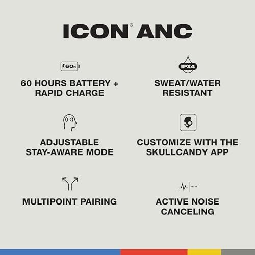 Tags: #Skullcandy #Icon #ANC #Wireless #OnEar #Bluetooth #Headphones #Active #Noise #Cancelling #Hours #Battery #Sweat #Water #Resistant #Foldable #Durable #Microphone #iPhone #Android #Bone