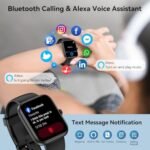 Multi Functionality: Smart watch for men women with alexa assistant, alarm clock, stopwatch, flashlight, water reminder, music control, camera control, weather forecast, find mobile phone and other useful functions