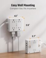 Mountable Power Strip Outlet Extender: 2 mounting holes on the back enable this white extension cord for secure wall / desk / counter installation. The space-saving compact design, optimized for apartment / dorm room / home office use with UL-recognized cable and V-0 fire-retardant casing.
