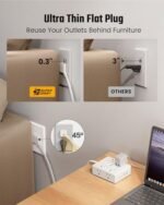 Flat Extension Cord 10 ft: With an ultra thin flat head (only 0.3 inches), our flat plug power strip can easily fit in tight spots and hide behind furniture (sofa / bed / nightstand) with wall-flush alignment; The 45° right angle plug creates extra space for other receptacles below without blocking.