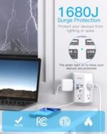 Be the first to review “Surge Protector, 5 Outlets Extender with 4 USB Ports(USB C), 3-Side 1680J Power Strip Multi Plug Outlet Expander, USB Wall Charger, Outlet Splitter Adapter Wall Mount for Home Travel Office ETL Listed” Cancel reply
