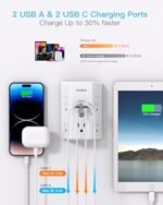 【Multi Plug Wall Outlet 】- The plug extender total output of 4 USB ports is 5V/3.1A. Built in smart technology, the multi plug outlet can auto-detect charged devices and deliver optimum charging speed up to 5V/2.4A (max) each port, USB-C up to 3A.( Please note The UCB-C port is not Quick Charger 3.0, doesn’t support any other devices which need 9~22V charging voltage.)