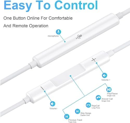 🎵【Stronger Wire & Remote Control】: The usb c in ear wired headphones cord is strengthened for longer durability. Support Volume+/-, Last/Next Track, Pause, Answer/End/Reject Call to free your hands when listening to music, having phone calls while driving, walking, exercising, working, shopping, etc.