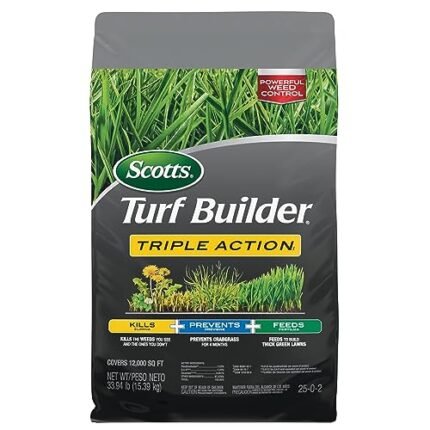 Scotts Turf Builder Triple Action1 – Combination Weed Control, Weed Preventer, and Fertilizer, 33.94 lbs., 12,000 sq. ft.
