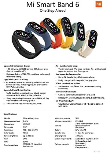 Xiaomi Mi Band 6 Activity Tracker High-Res 1.56″ AMOLED Screen, SpO2 Monitor, 30 Sports Modes, 24HR Heart Rate and Sleep Monitor Smart Watch (Renewed)