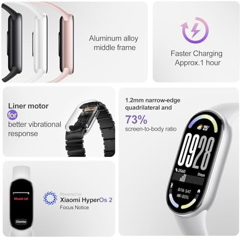 A smarter experience with HyperOS: Enjoy a smoother, more connected, and more efficient user interface with the advanced Xiaomi HyperOS 2. Benefit from improved system performance and smarter interactions on your wrist.