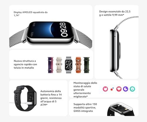 Xiaomi Smart Band 8 Pro Fitness Tracker, 1.74″ AMOLED Display, Up to 20 Days Battery, 5ATM, Sleep and Heart Rate Monitoring, 150+ Training Modes, Pedometer, Black